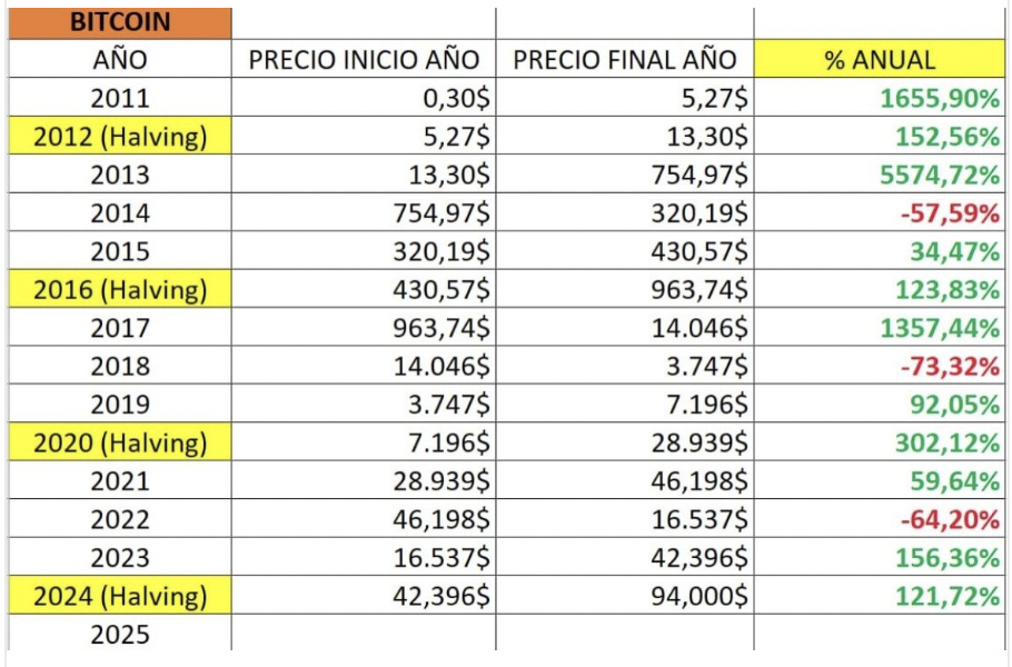 Este año debería de acabar en positivo despues del Halving como en todos los anteriores años ... Veremos como acaba y si sigue los patrones marcados desde 2011 o rompe con el esquema. (Por lo menos esperemos que se quede en "algo" de verde)