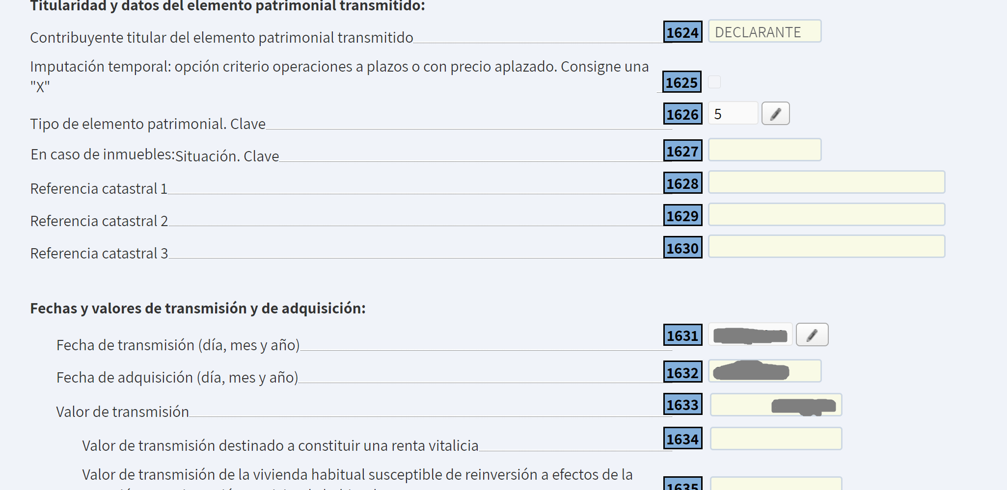 Al pinchar sobre la casilla 1631, se nos abrirá una nueva ventana en la que indicaremos las fechas de las operaciones.