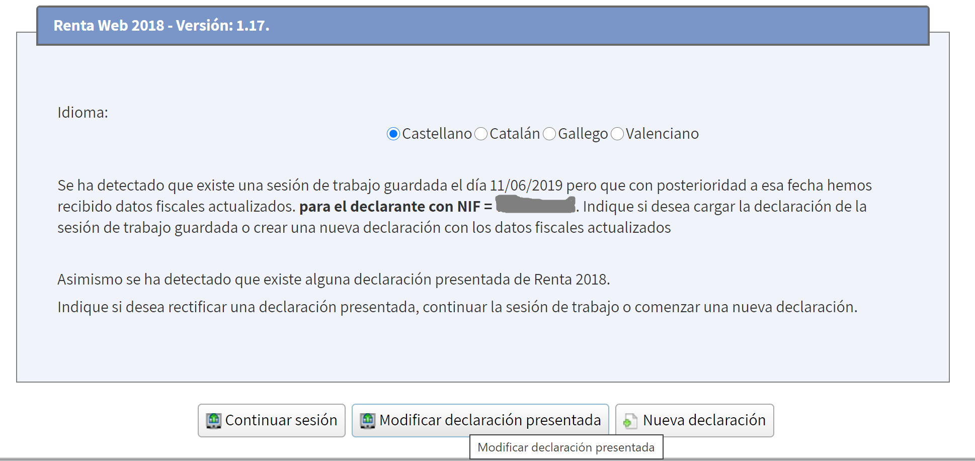 A partir de aquí, ya navegaríamos por la declaración y la modificaríamos de la forma habitual, enviándola cuando terminemos.